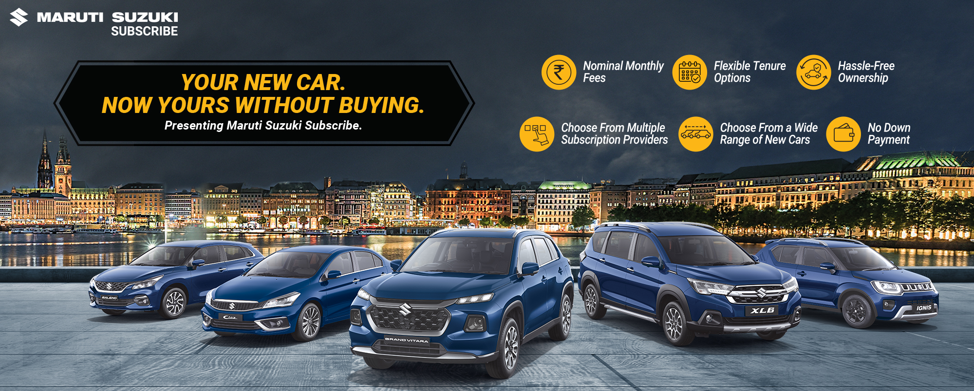 Maruti Suzuki Subscribe enables all customers to enjoy driving their preferred Maruti Suzuki cars without having to deal with all the financial responsibilities that come with owning a car.All you need to do is opt for a monthly subscription plan at a fixed monthly fee, which includes the routine maintenance and insurance costs, and choose a flexible tenure. At Vishnu Cars Pvt Ltd in, Chennai, Guduvancheri, all Hatchback, Sedan, SUV, the MUV models line-up includes Baleno, Invicto, EVitara, Jimny, Ciaz, Ignis, Fronx, Grand Vitara, XL6. Here, you will enjoy Maruti Suzuki Subscribe benefits such as: